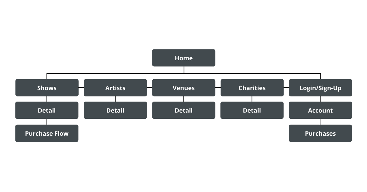 A simple sitemap was created to establish the information architecture of the website.